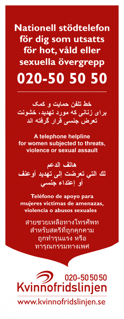 För dig som utsatts för hot, våld eller sexuella övergrepp. De svarar dygnet runt och ser till att du får hjälp, oavsett dit kön eller ålder.