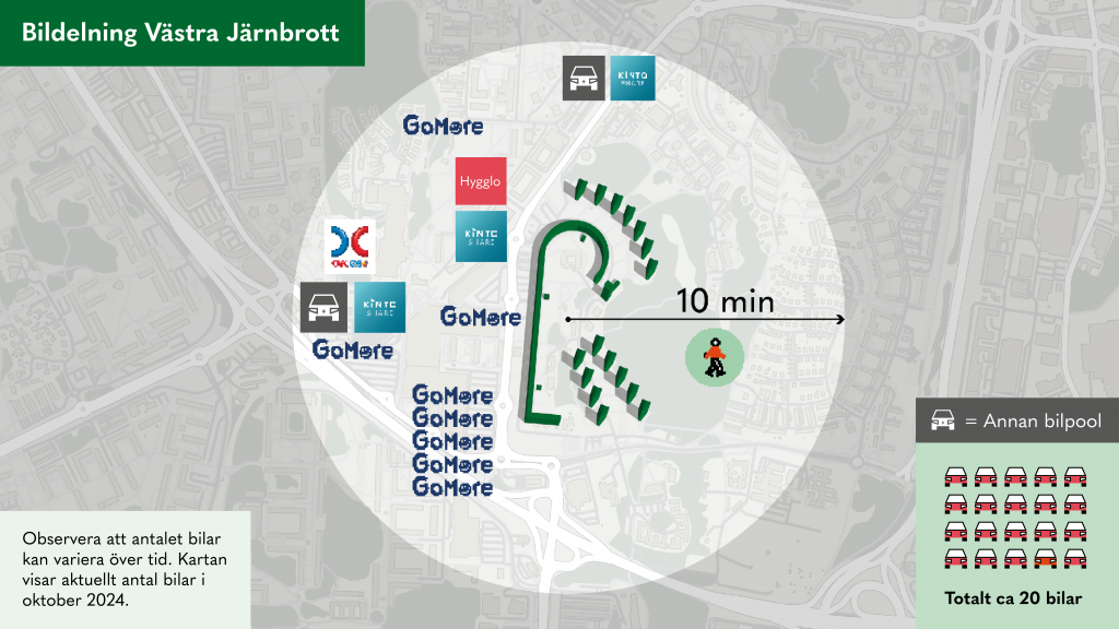Visste du att det finns flera möjligheter till att använda bildelningstjänster i Västra Järnbrott? När vi kollade senast var det över 20 bilar tillgängliga i närheten av din bostad. Det är olika bilpoolsaktörer som hyr ut bilar, men det är också privatpersoner, kanske din granne, som hyr ut sin egen bil via en bildelningstjänst.