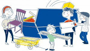 Under sista helgen i månaden kommer särskilda containrar där du som hyresgäst kan slänga stora grovsopor som inte skall slängas i soprummet – tex möbler, kläder och skor. I containern ska du inte kasta elektronik, farliga ämnen och matavfall.