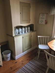 Lågt i tak, vedspis och inredning från gamla tider. Visningslägenheten längst upp på Husargatan 21 ger en bild av hur det kunde se ut.