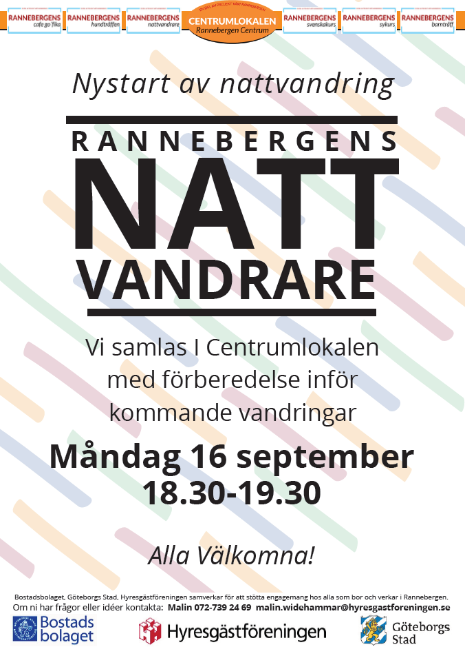 Nu nystartar nattvandringen i Rannebergen. Vi samlas i Centrumlokalen 16/9 för att förbereda kommande nattvandringar.