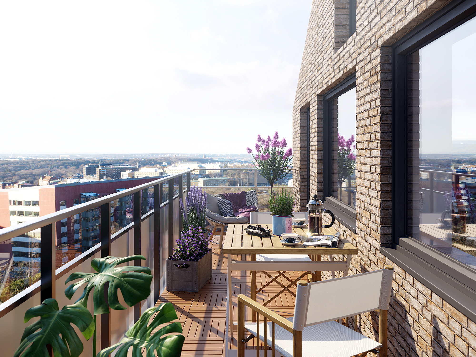 Alla lägenheter har balkong eller uteplats.