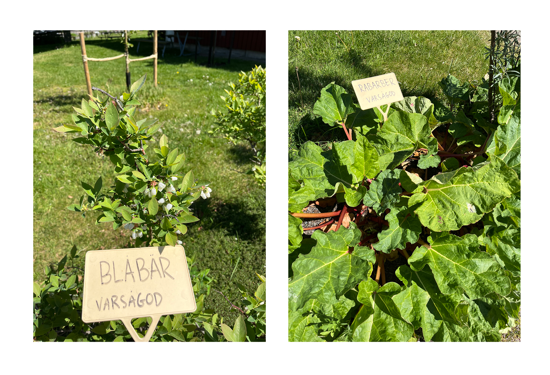 Vid Västra Andersgårdsgatan finns buskar medamerikanska blåbär, vinbär och rabarber. Plocka gärna och baka en paj! På Boservice finns recept.