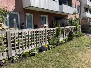 Varje år besiktar vi uteplatserna i området. När det är klart lämnar vi ett omdöme kring skötseln. Du kan få väl godkänd, godkänd, eller ej godkänd. Har du fått omdömet ej godkänd måste du rätta till det som inte är godkänt. Efter en tid går vi en andra rond för att besikta alla som inte blivit godkända.