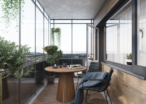 Alla balkonger är inglasade och utsikten är fantastisk.