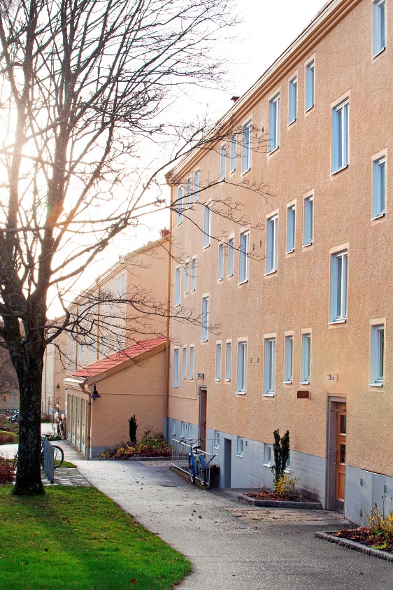 Lägenheterna som vi förvaltar i Högsbo är välplanerade och finns från 1 till 4 rum och kök. De ligger i gula trevåningshus med gott om grönområden omkring.