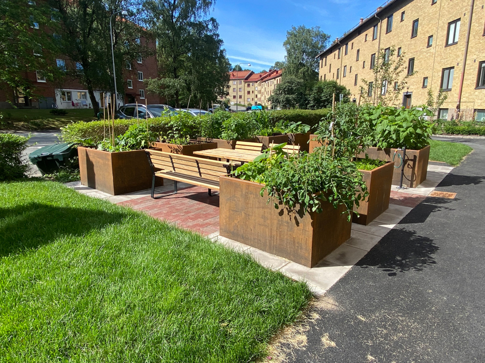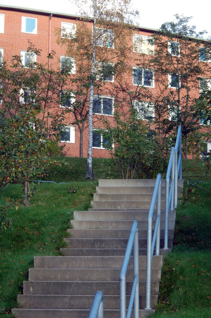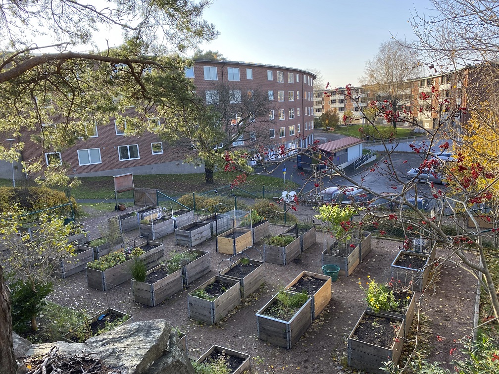 Finns i husen på Träkilsgatan och på gården på Smörslottsgatan.